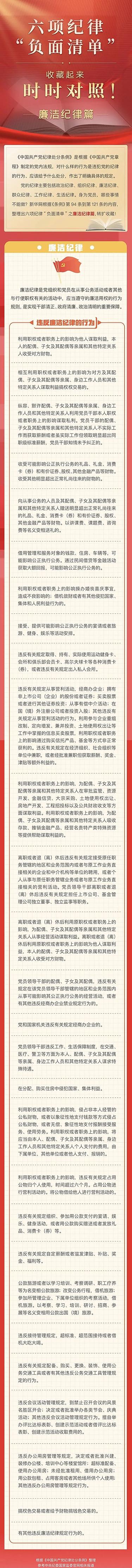 党纪学习教育丨一图了解廉洁纪律“负面清单”