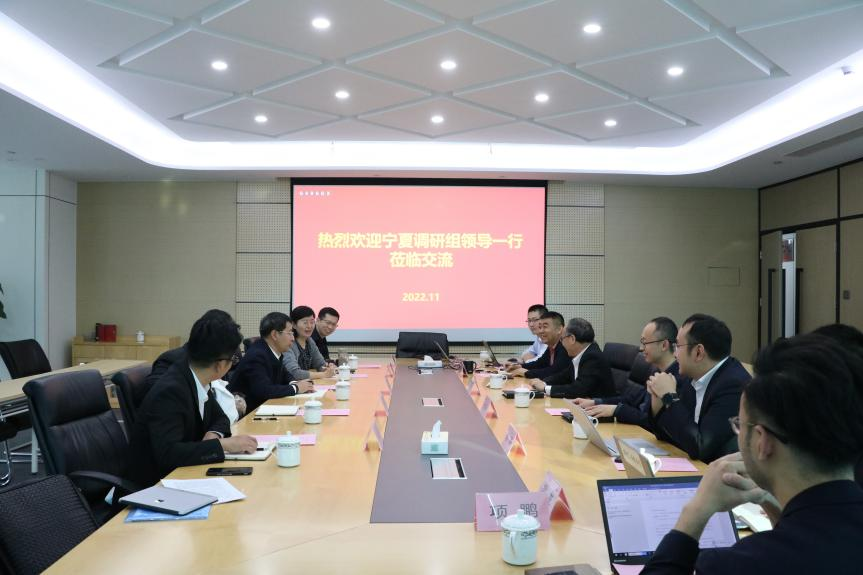 11月7日,宁夏国有资产投资控股集团总经理张保成、副总经理韩睿、中卫市金融局局长王铁、宁夏征信有限公司董事长侯明、宁夏国投基金管理有限公司总经理冉建强一行,赴安徽省征信股份有限公司开展业务交流。安徽征信董事长阮传宏、副总经理田继阳、总经理助理董飞等参加了座谈交流会。