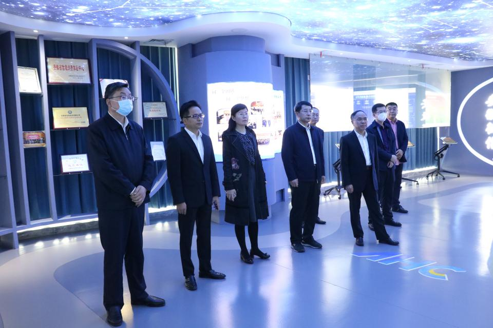 调研组一行首先参观了安徽征信创新体验馆,安徽征信董事长阮传宏向张保成总经理一行详细介绍了安徽征信的发展历程、重点产品、平台体系和创新成果情况。