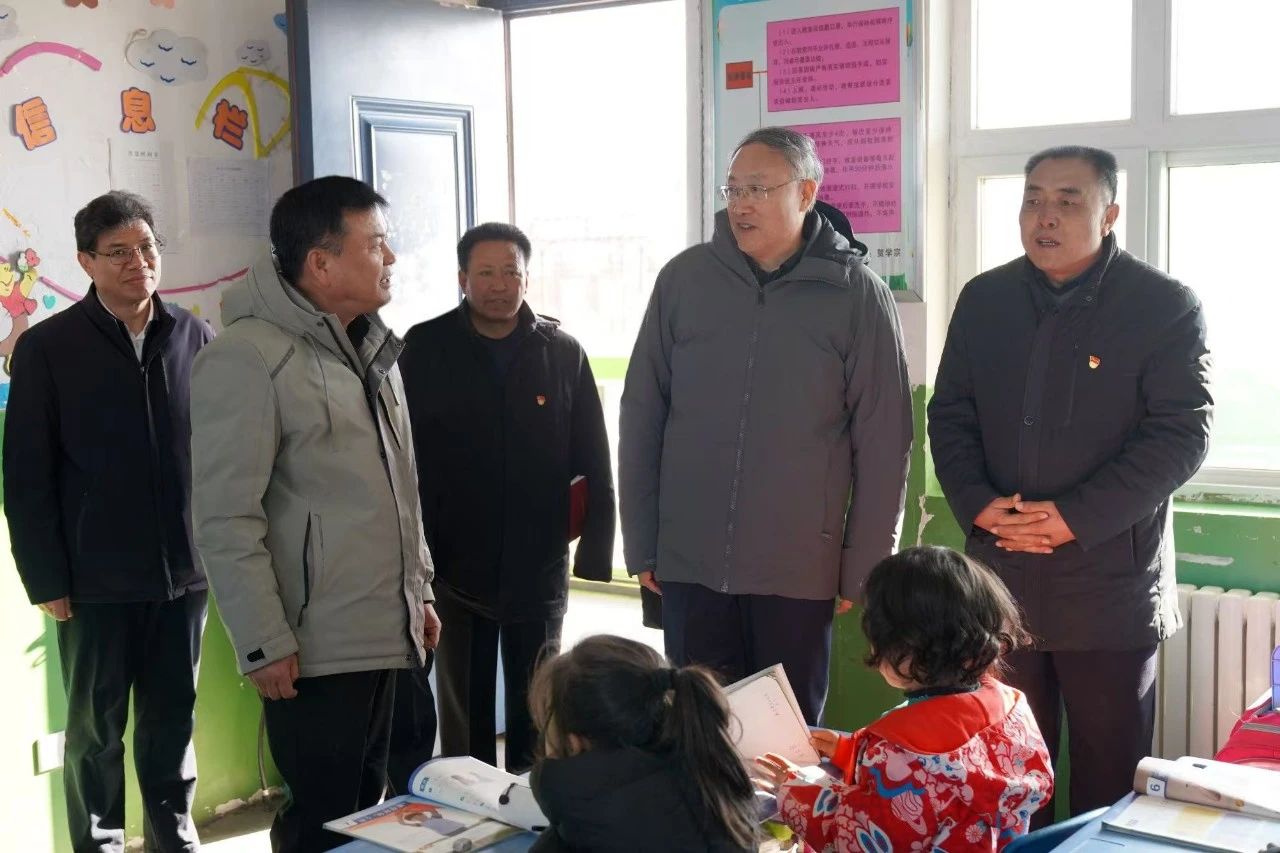 李邑飞在同心县菊花台完全小学,了解日常教学、校园安全等情况。 同心县融媒体中心记者 马海福 摄