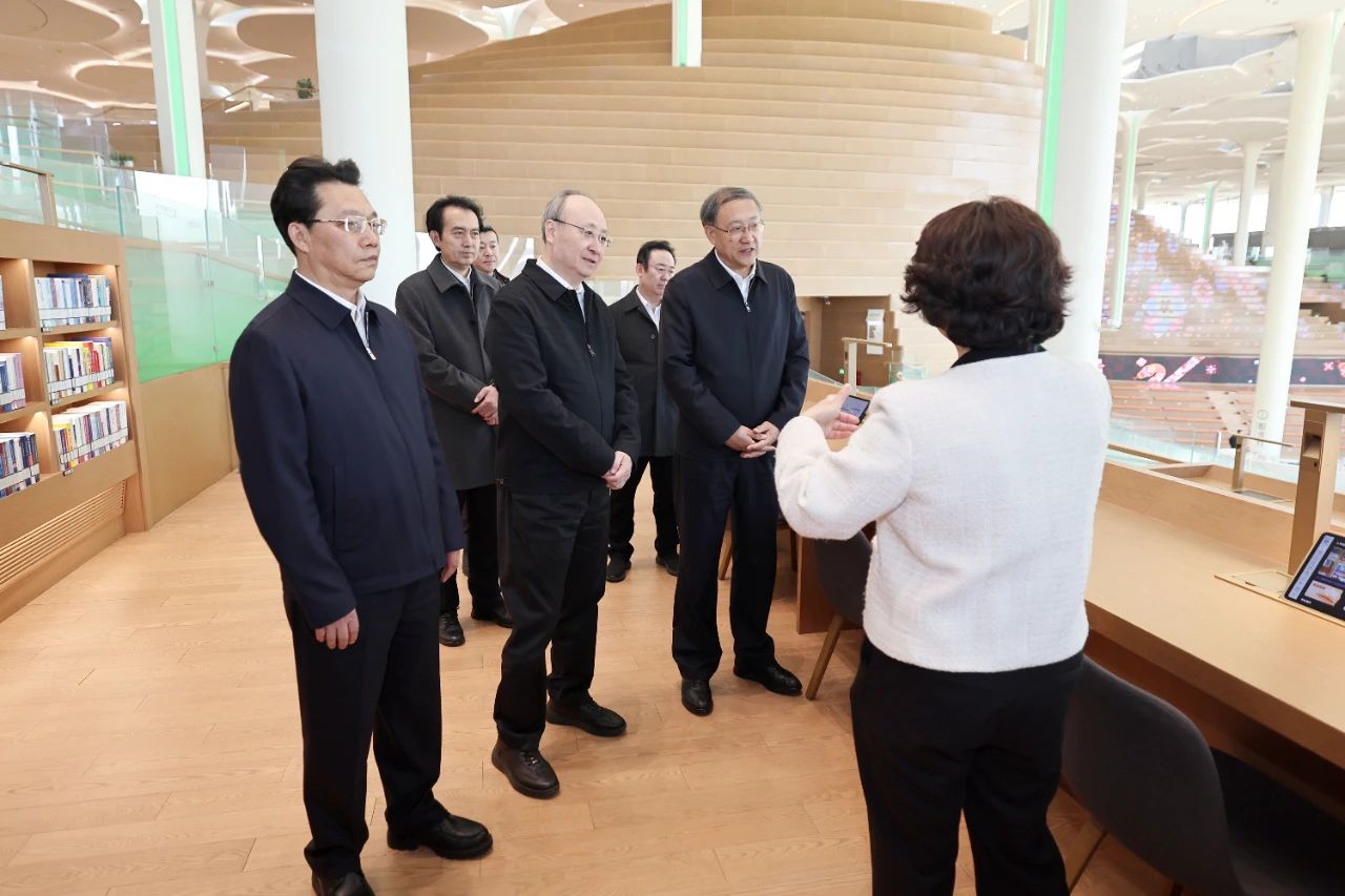 宁夏党政代表团在北京城市图书馆,考察智慧图书馆建设情况。